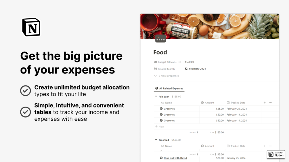 Take control of your finances effortlessly with our intuitively-designed Notion template. It's not just a budgeting tool; it's your financial GPS, guiding you towards your goals.
