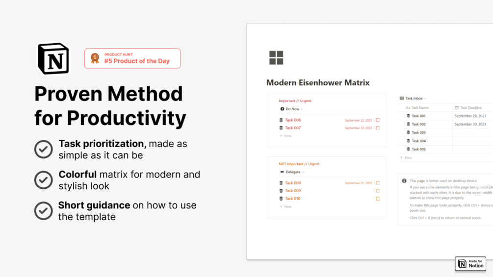 - The simplest, most intuitive, modern-look Notion template for Eisenhower Matrix